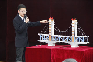 我院參賽隊(duì)代表李旭鵬(左一)上臺(tái)領(lǐng)獎(jiǎng) |